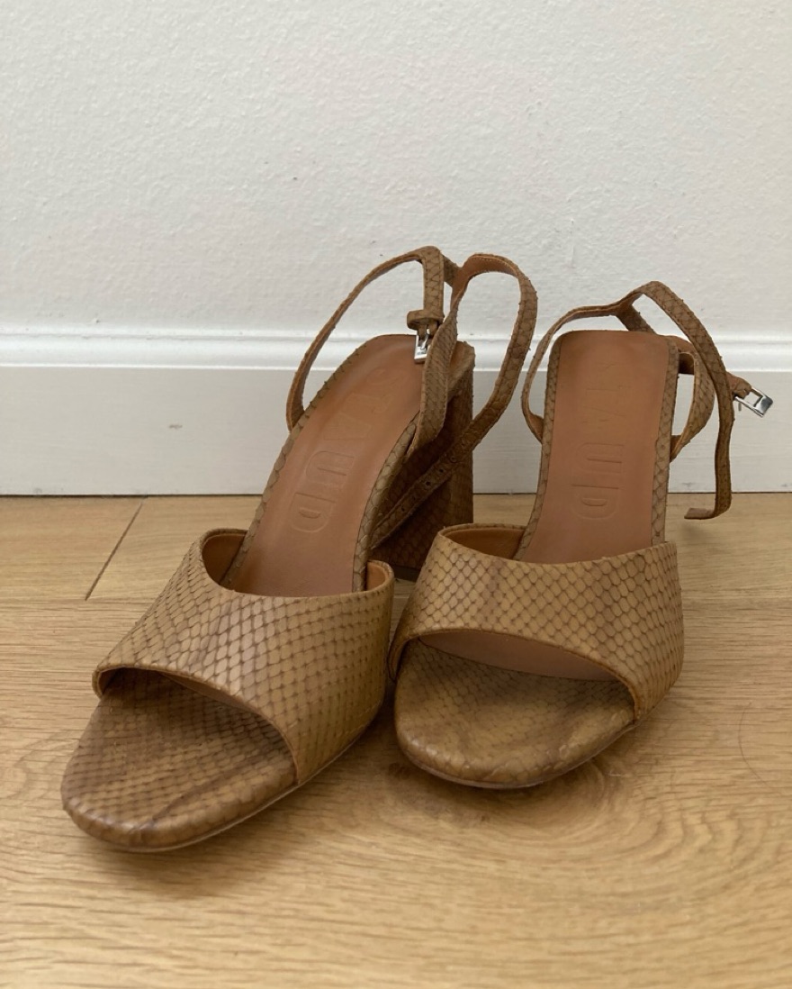 Staud Chic Snake-Embossed Leather Heels by Staud - Pickle