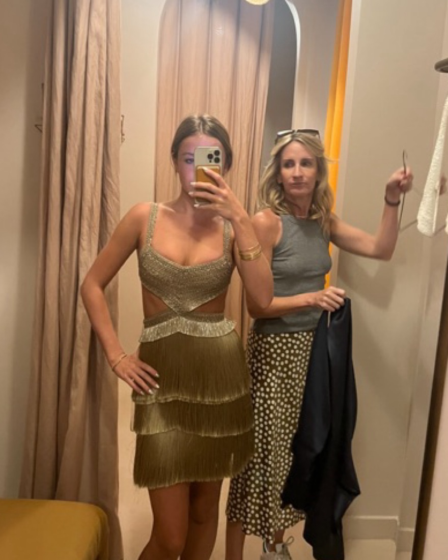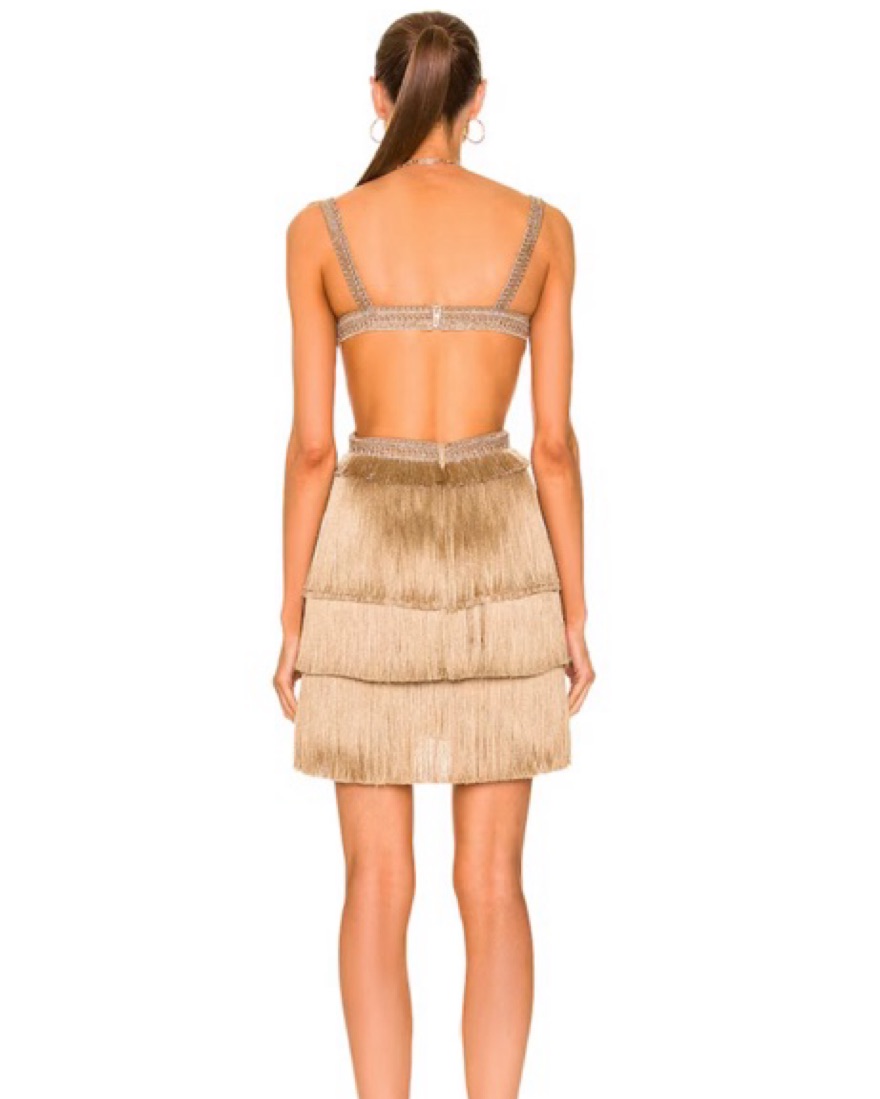 Stunning gold pat bo dress, so fun for vacation/birthday/special occasion. Super flattering and fits an xs perfectly. The top is a tight on my boobs so if youre larger than a C i wouldnt recommend.
