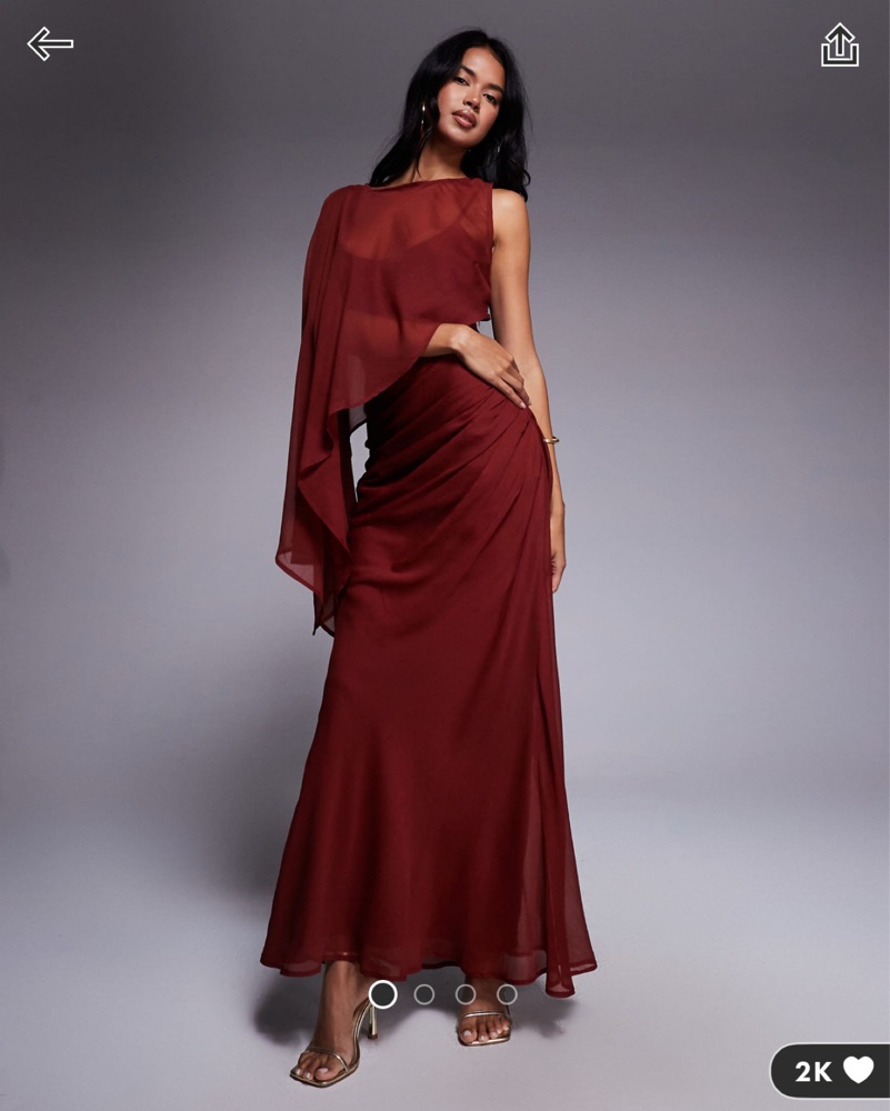 Super flattering red maroon square neck dress with attached sheer cape/shawl