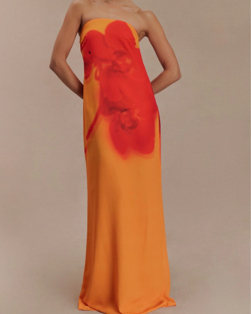Meshki Orchid Dress Size S. (Minor damages at the top front of the dress and a small whole in the back bottom part it the dress) price reflects damage. **PLEASE RETURN ITEMS CLEANED** DRY CLEAN or machine wash in cold water, air dry only