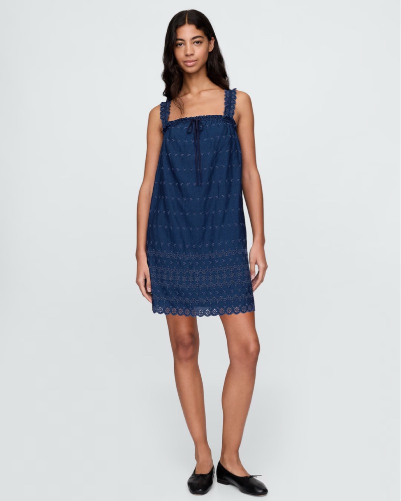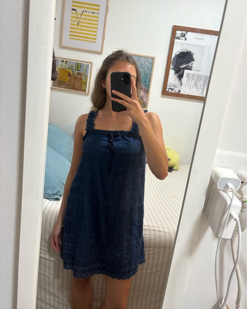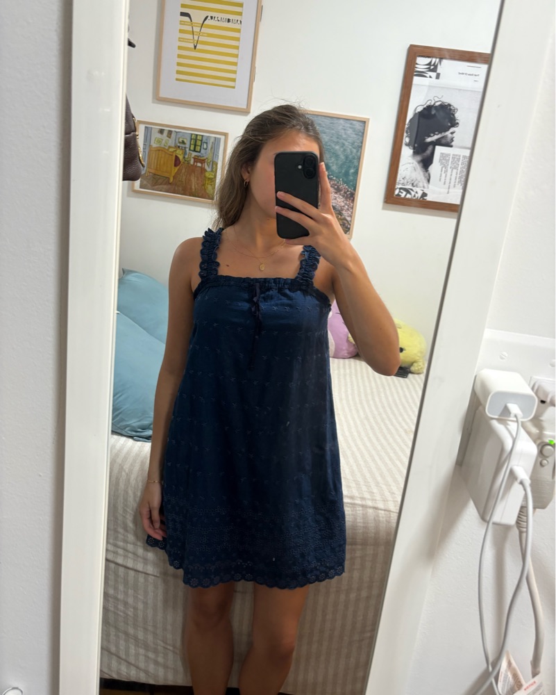 The most perfect navy mini dress from the Gap x Doen collection. This is amazing for summer and can be dressed up or down! Super comfortable and amazing for hot weather. Size xxs but totally stretchy, I got this size so it would be short!
