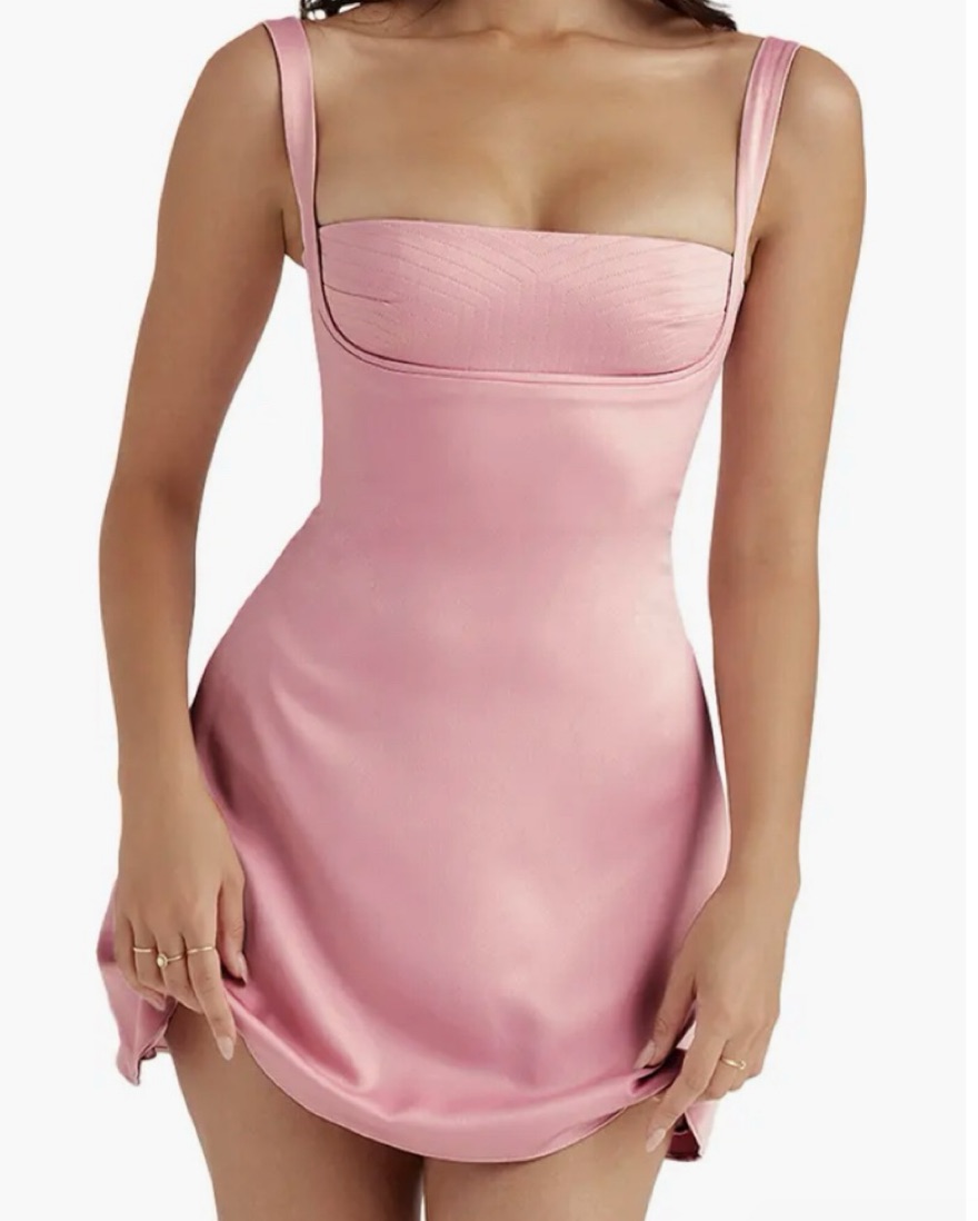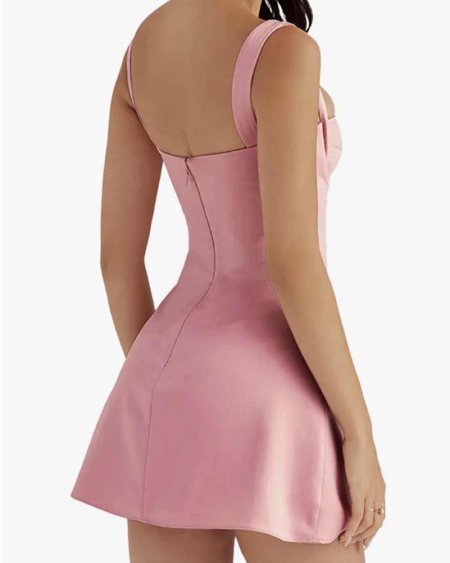 Rosy pink cocktail dress that snatches your waist with an a-line shape 💞perfect if you're 5'4 and under! I'm 5'5 and my friend helped me hem it (but it's a little short in the back). Would not recommend for anyone over a C/D cup & great for my size 6 or 8 girlies