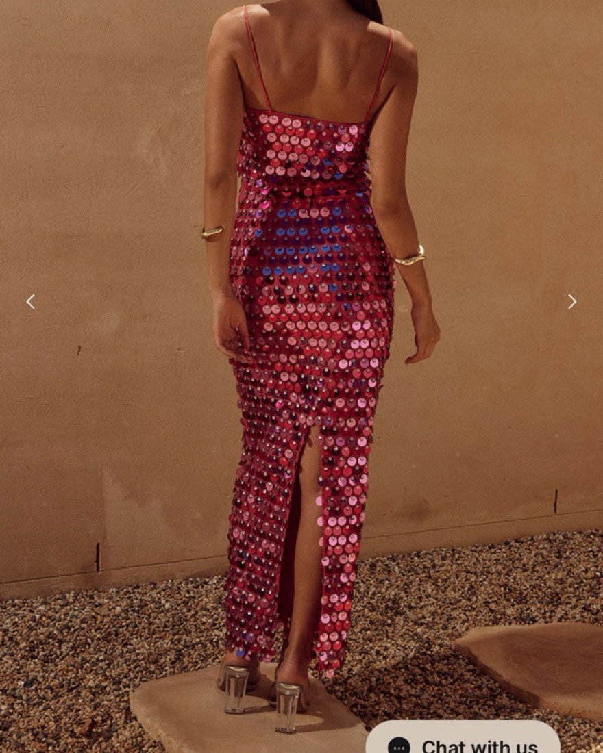 Fits 4,6 best, relaxed, lighting can change color of dress. Dry cleaning included