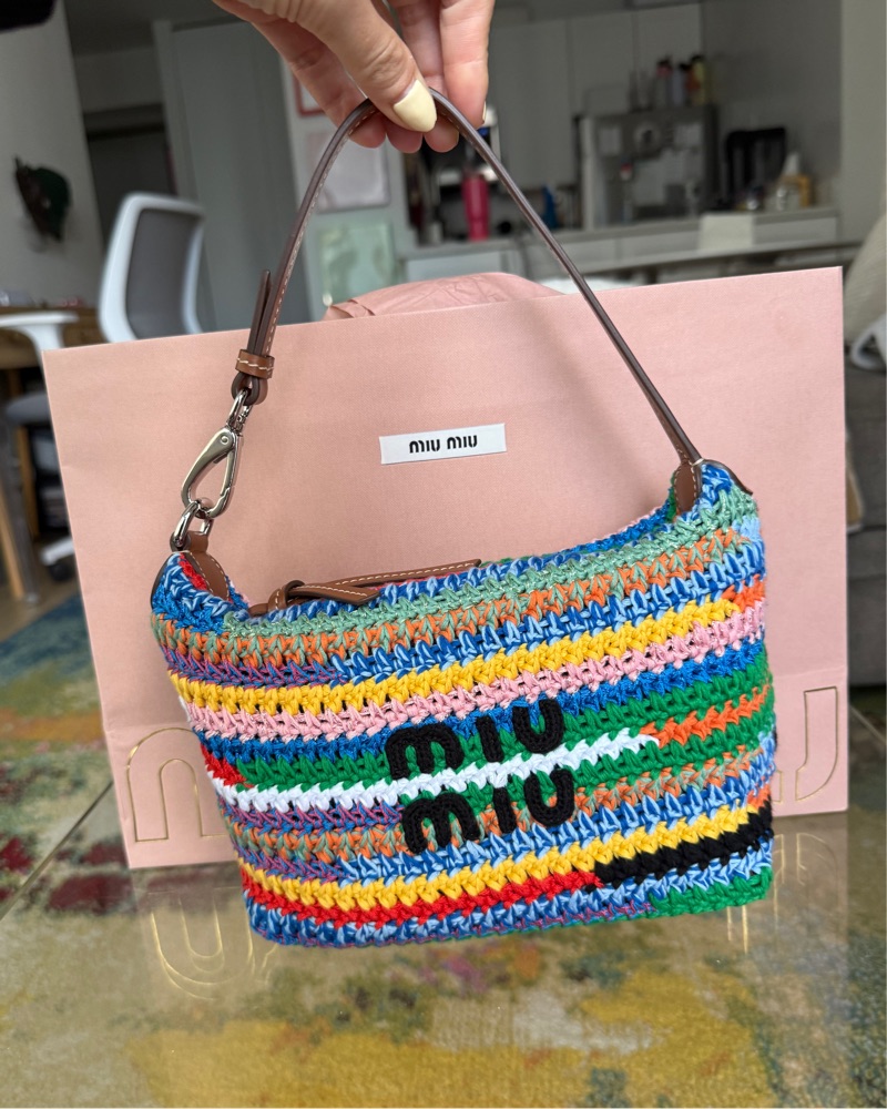 Sickest bag ever and no longer sold in stores. Limited edition rainbow Miu Miu crochet bag. Fits phone, keys, wallet, etc. Please handle with care!!! Sheβs very precious to me π₯Ή