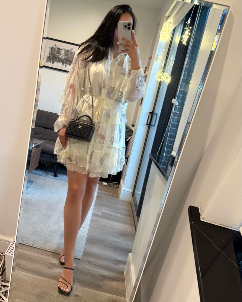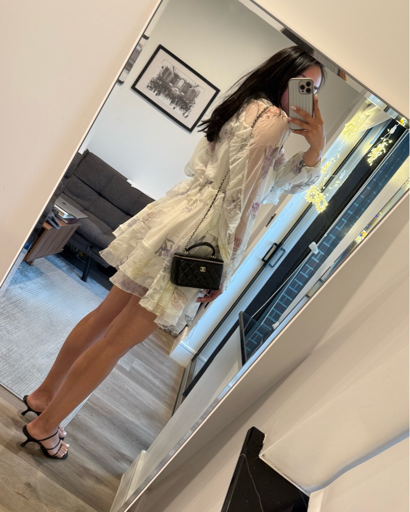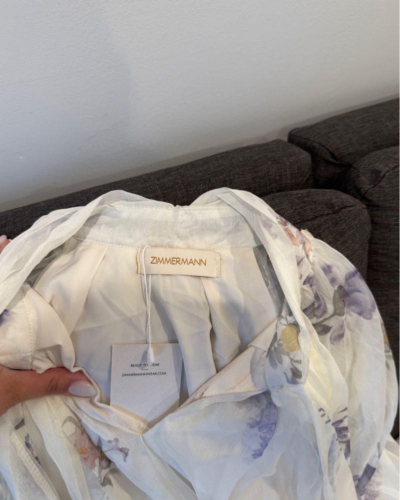 Zimmerman dress. Super flowy, pretty much one size, no zipper, and comes with a belt
