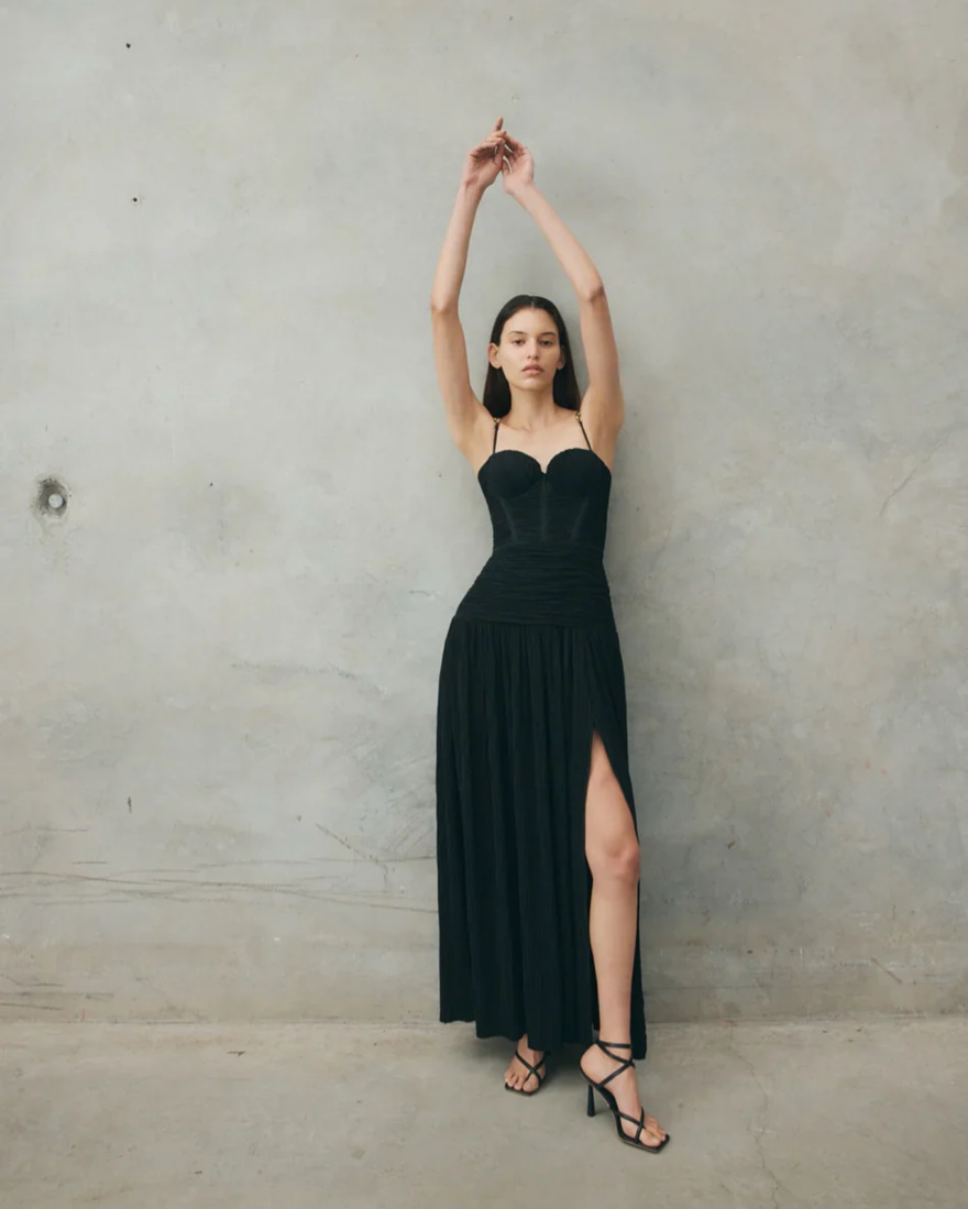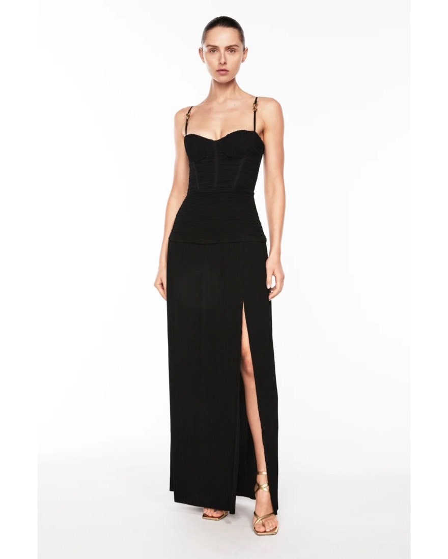 Size AU 8/US 4 or size small - model is wearing this size. True to size. tags: black tie dress, manning cartell, arcina ori, formal gown, cult gaia, wedding guest dress, viral, bachelorette dress, black gown, black dress, black formal dress