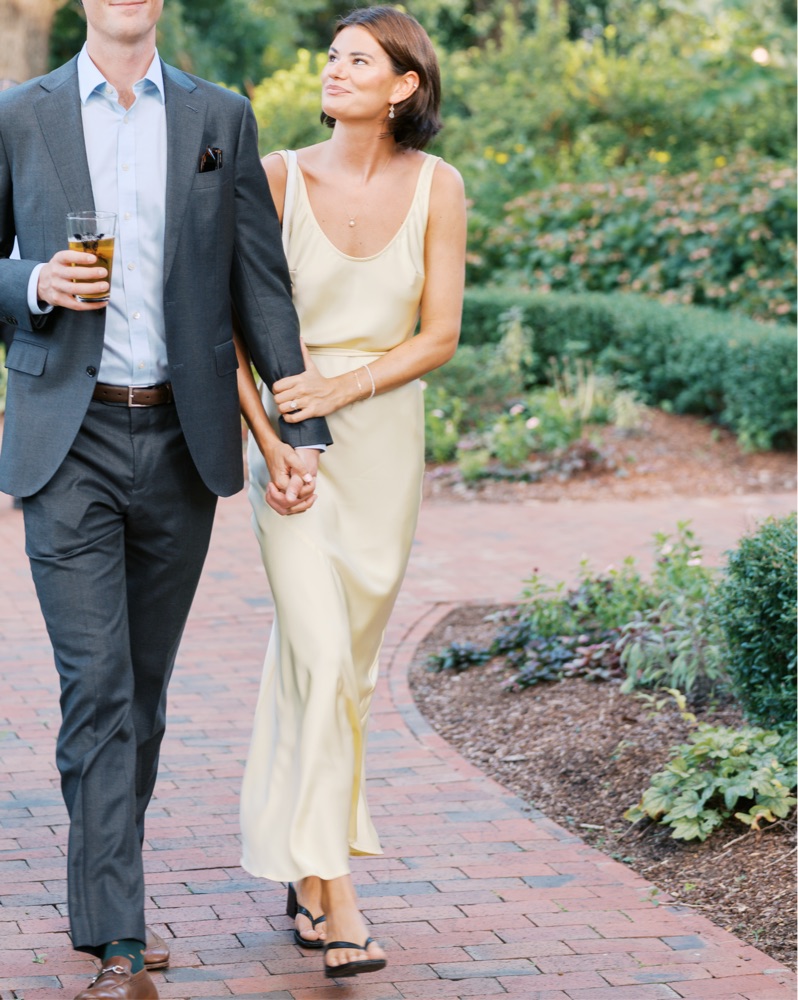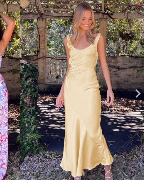 Worn once- Beautiful yellow cocktail/formal dress. Satin material, maxi length, wrap around stings on both sides, low back