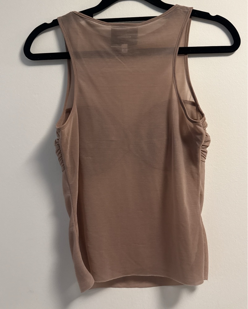 This versatile knit tank is perfect for day-to-night wear. The ruched detailing adds a touch of elegance, making it suitable for a variety of occasions.