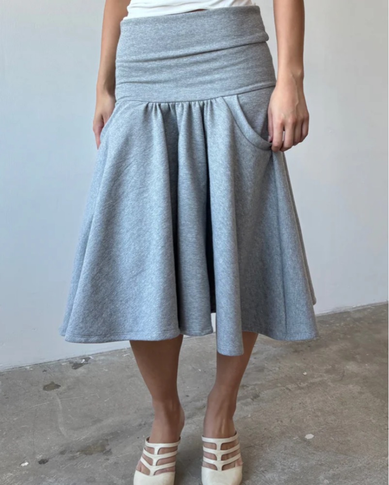 Cutest coziest skirt in grey sweatshirt material! Has buttons inside so it can be adjusted to be multiple different skirts. Sold out everywhere!