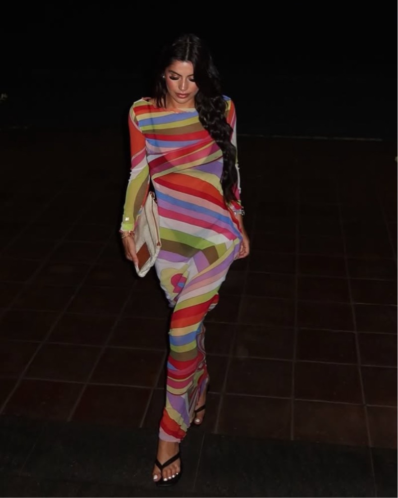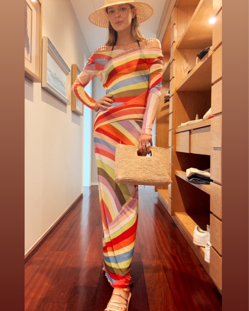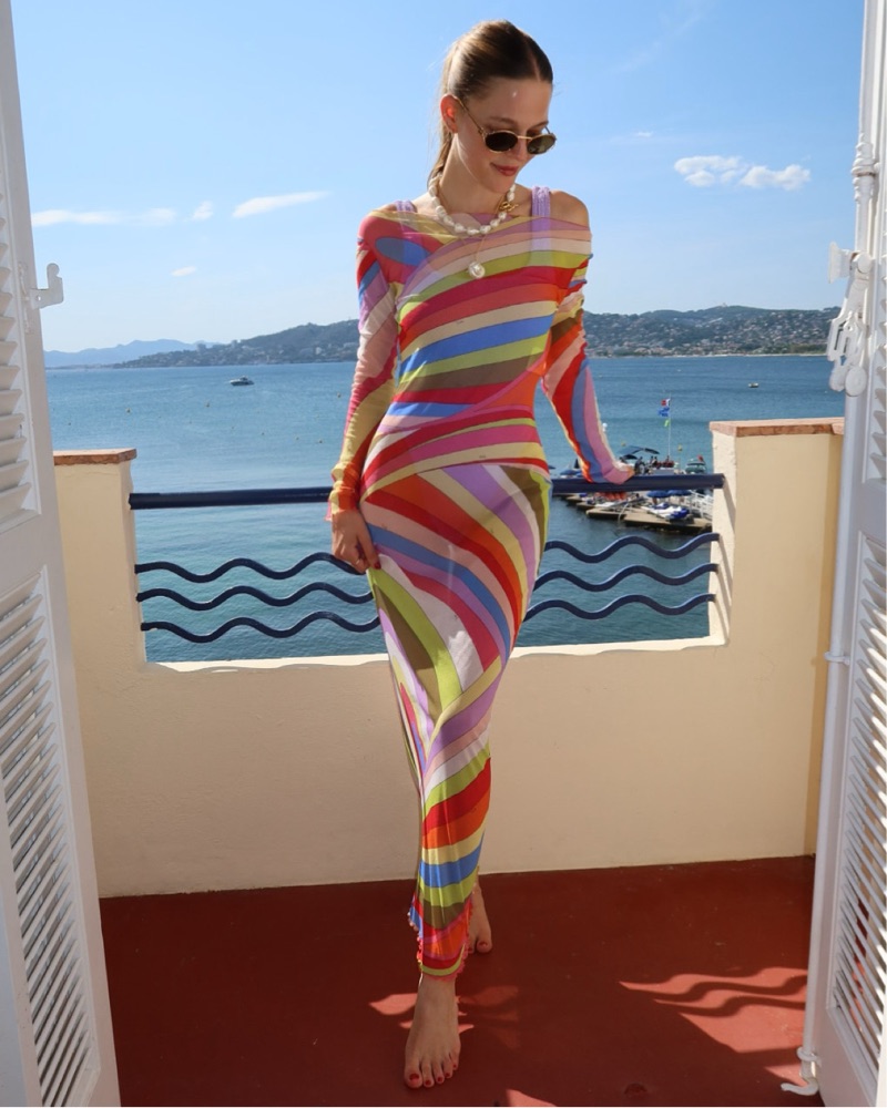 Size IT 40 (equivalent to US 4 or Small). Fitted, sheer maxi dress. Model is also wearing size IT 40. Very delicate fabric