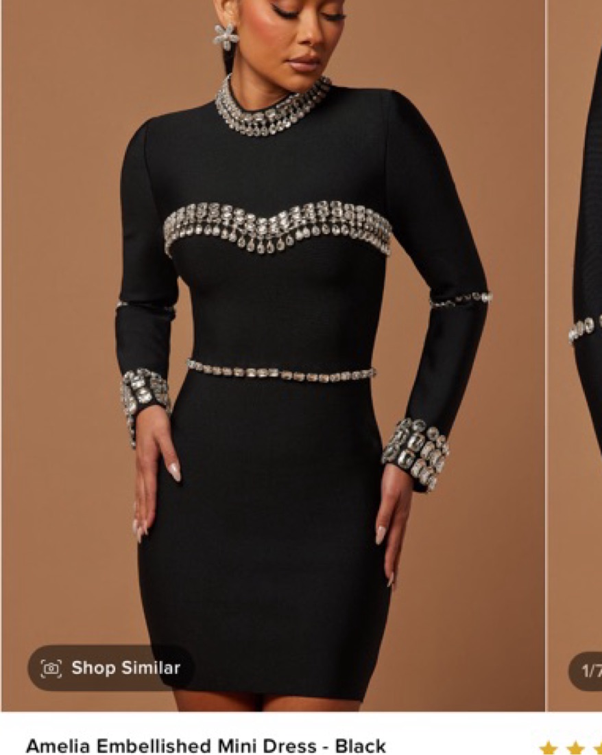 Amelia Embellished Mini Dress - Black by Fashion Nova - Pickle