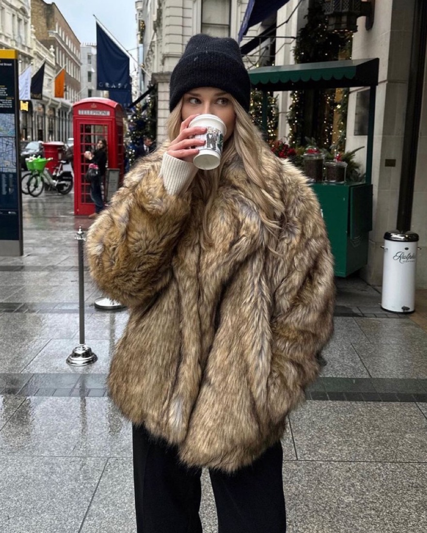 Beautiful big fur coat - zadig and voltaire / Coat, jacket, brown, fur jacket, fur coat, faux fur, mafia wife, trendy jacket, apres ski, fall and winter jacket Halloween