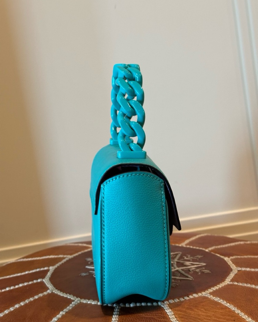 Turquoise. Top handle and chain included