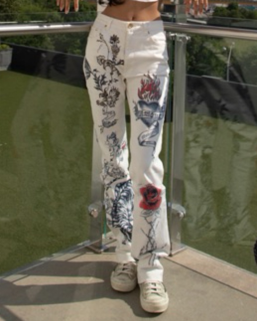 Iconic Roberto Cavalli tattoo print jeans. Size XS/34/6. Feel free to message w inquiries abt sizing!