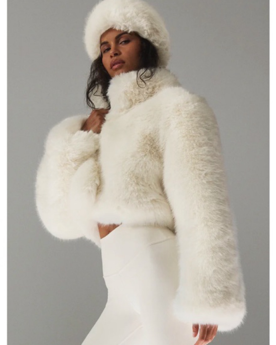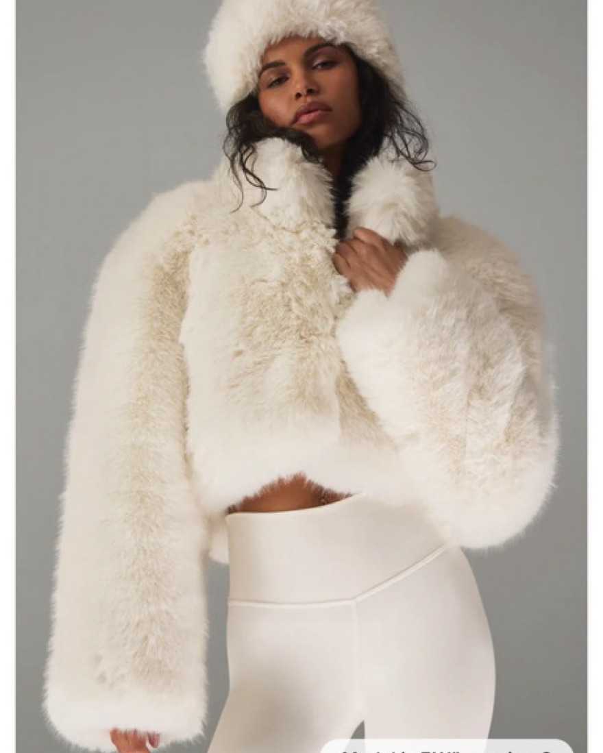 ALO Opulent Faux Fur Cropped Jacket by Alo Yoga - Pickle
