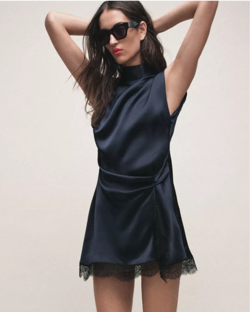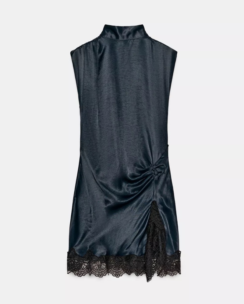 Sleek Satin Lace Mini Dress by ZARA - Pickle