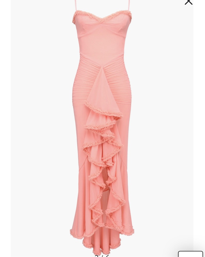 Gabbi Ruffle Mesh High-Low Cocktail Dres by House of CB - Pickle