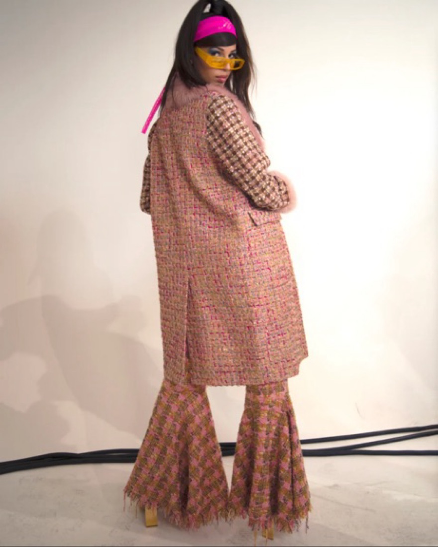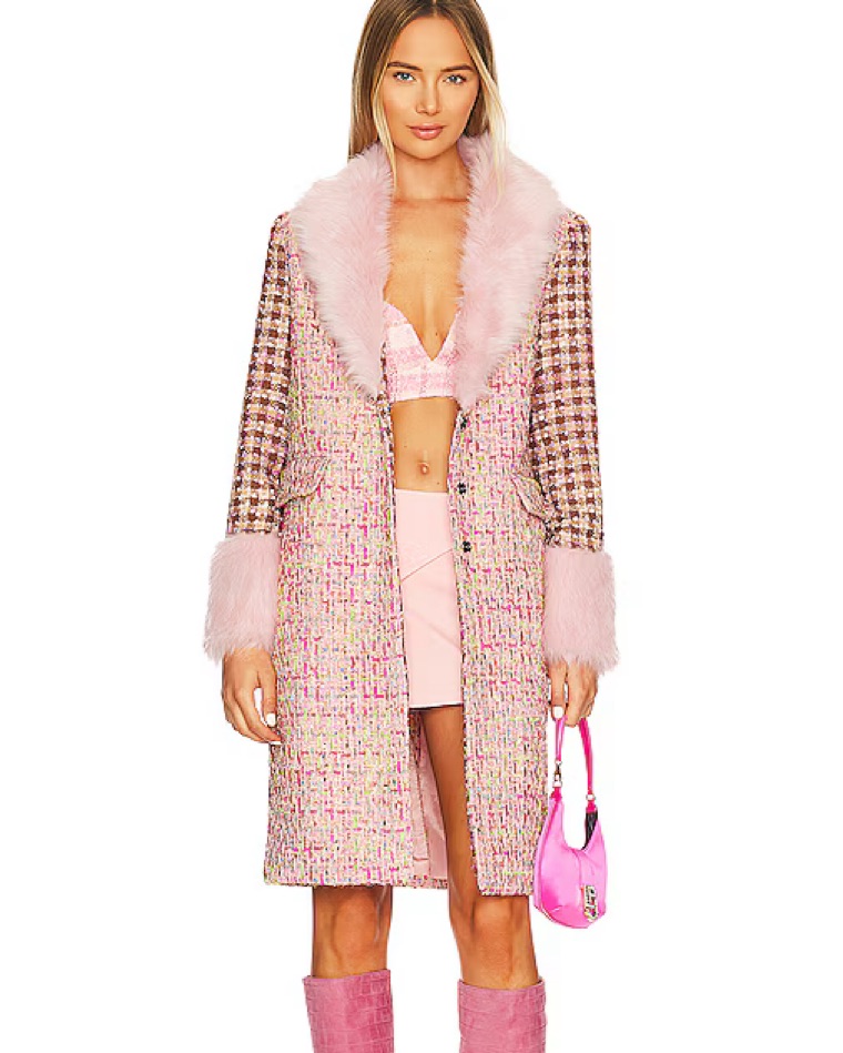 Kim Shui Vegan Fur Lined pink tweed Coat