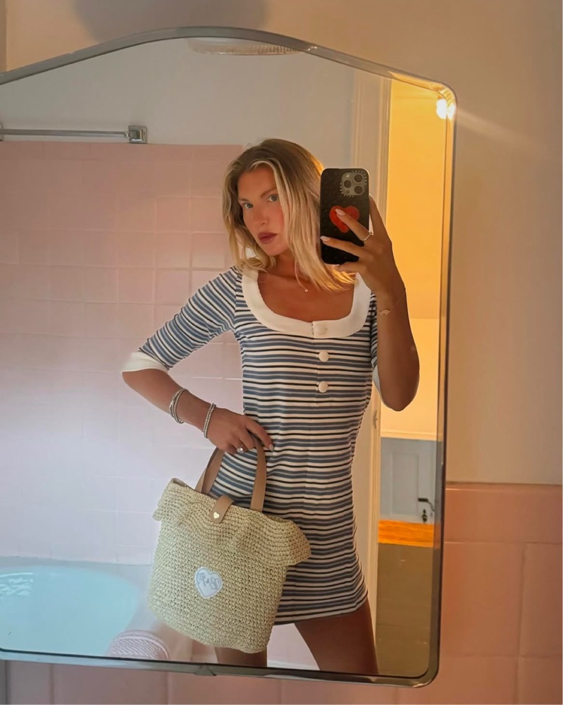 Fait Par Foutch Mia Dress in mykonos stripe! Size small. Can be worn with buttons in front or back.
