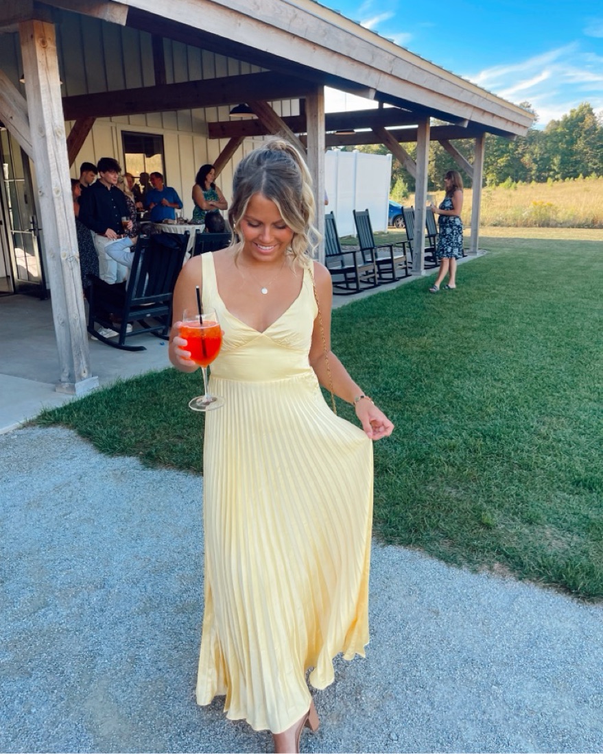 I wore this gorgeous dress to a wedding last weekend and got SO many compliments. It’s the perfect end-of-summer transitioning to fall dress. It has adjustable straps, is super comfortable and stretchy/easy to move around in. This is a size small (sold out online), I am 5’1 & 120lb, only worn once!