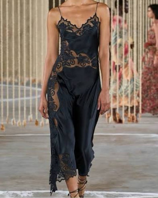 Comes with a slip you can wear under or not. Super delicate silk so please be careful. Worn once and dry cleaned immediately after. Black is shown for fit!