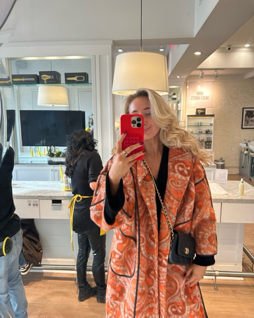 Gorgeous orange coat with paisley detail. An absolute showstopper, everyome compliments me when i wear this. One size fits all