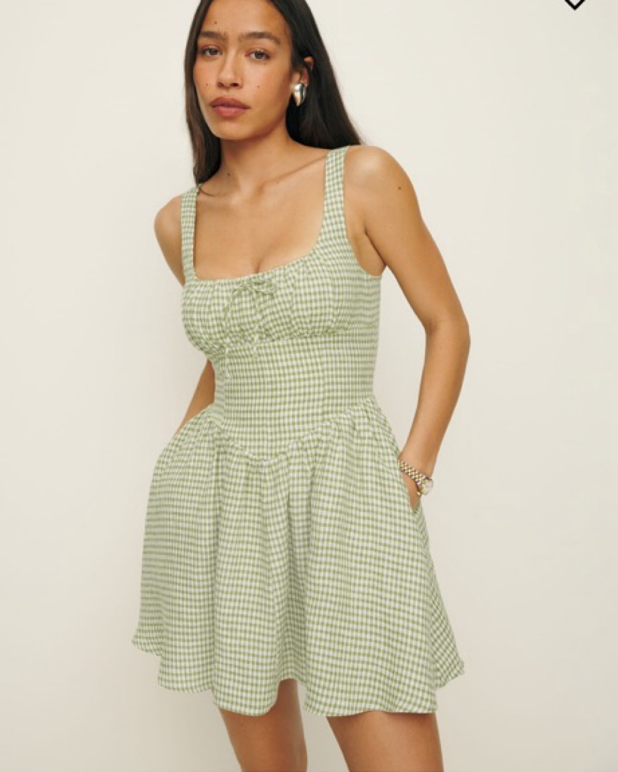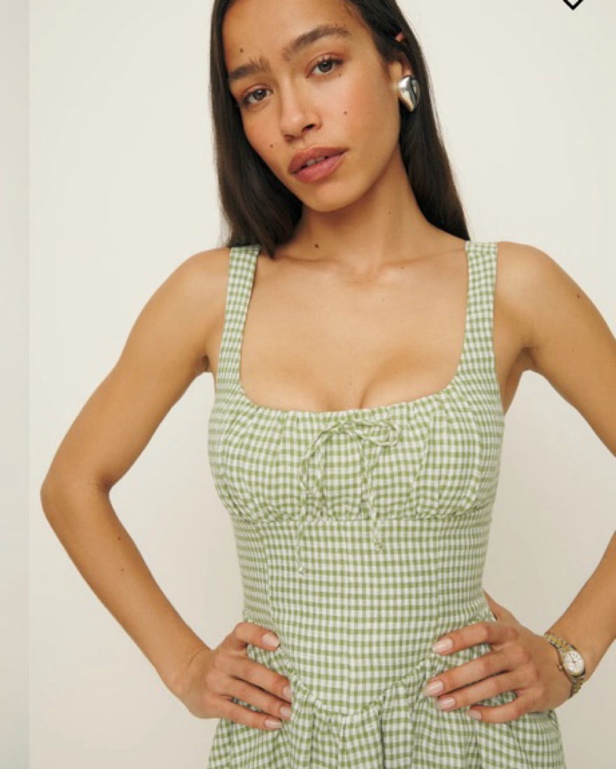 Reformation Checkered Green Dress