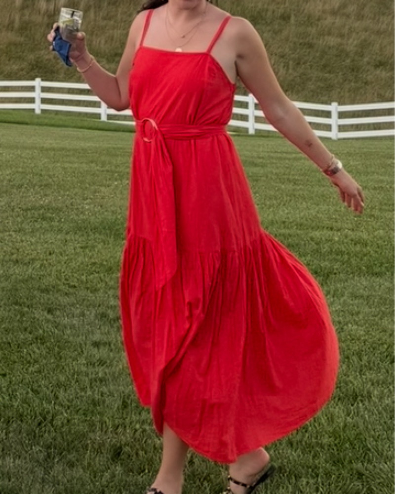 Red Fun Flowy Dress With Belt
