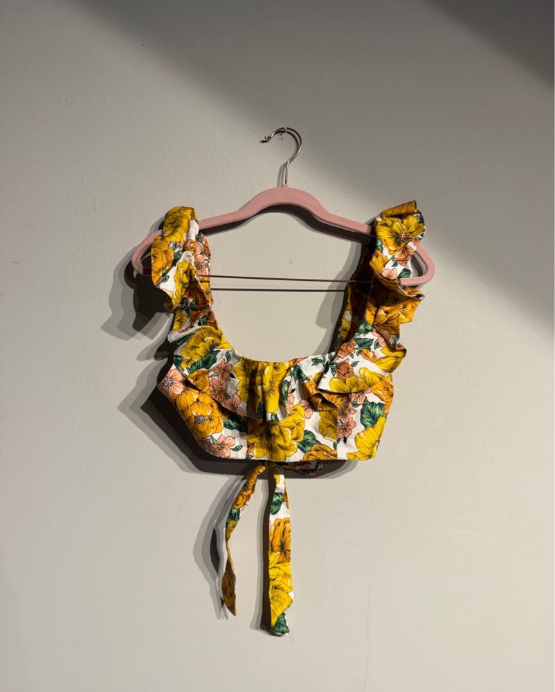Stunning floral crop top. Tie back closure. Women’s size Petite, bust measurement is 30.5”. No signs of wear perfect condition. Great spring & summer piece. More photos coming soon!
