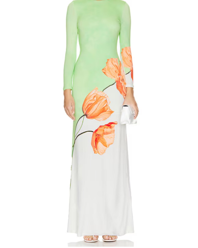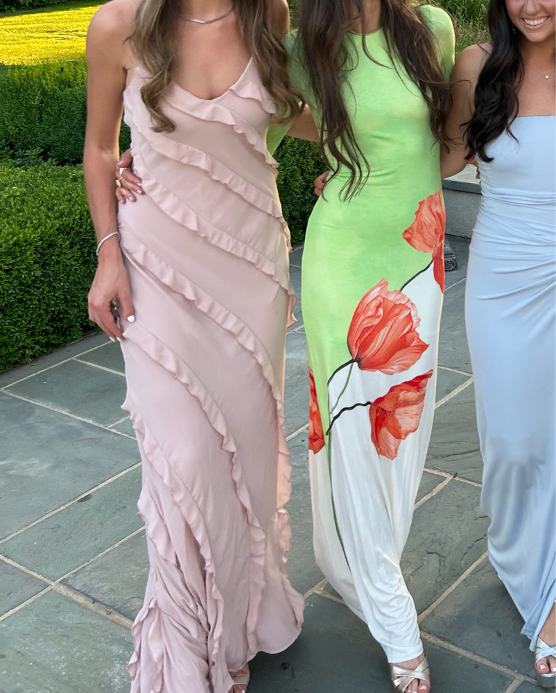 Stunning maxi dress, amazing colors. Never received more compliments on a dress than when I wore this one. Size 0 but stretchy material, will also fit sizes 2 and 4. Worn once, dry cleaned since and no alterations.