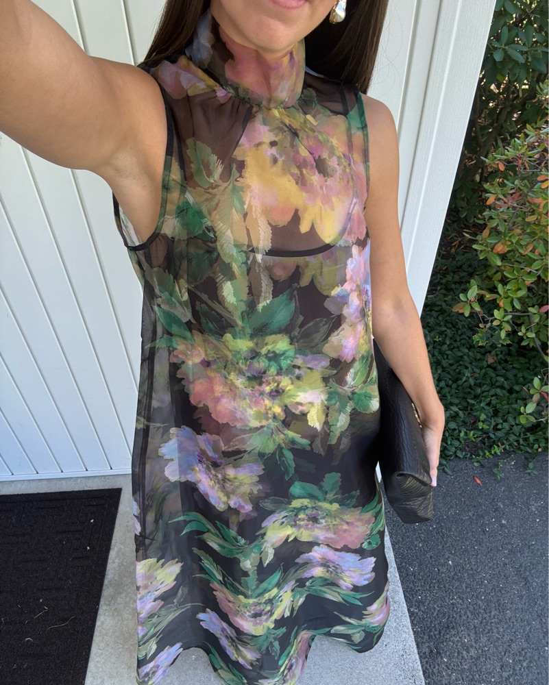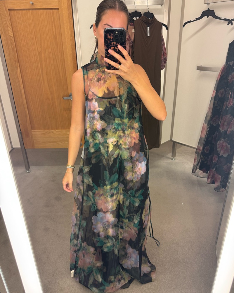 Size 4 but I am normally a size 0 and this worked out fine as the dress simply hangs. Hemmed to be floor length on me in small heels. I am 5’4.