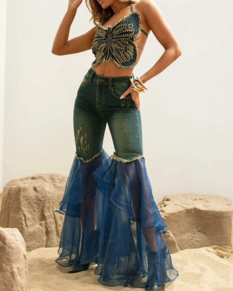 Butterfly Denim Pant Set by Fashion Nova - Pickle