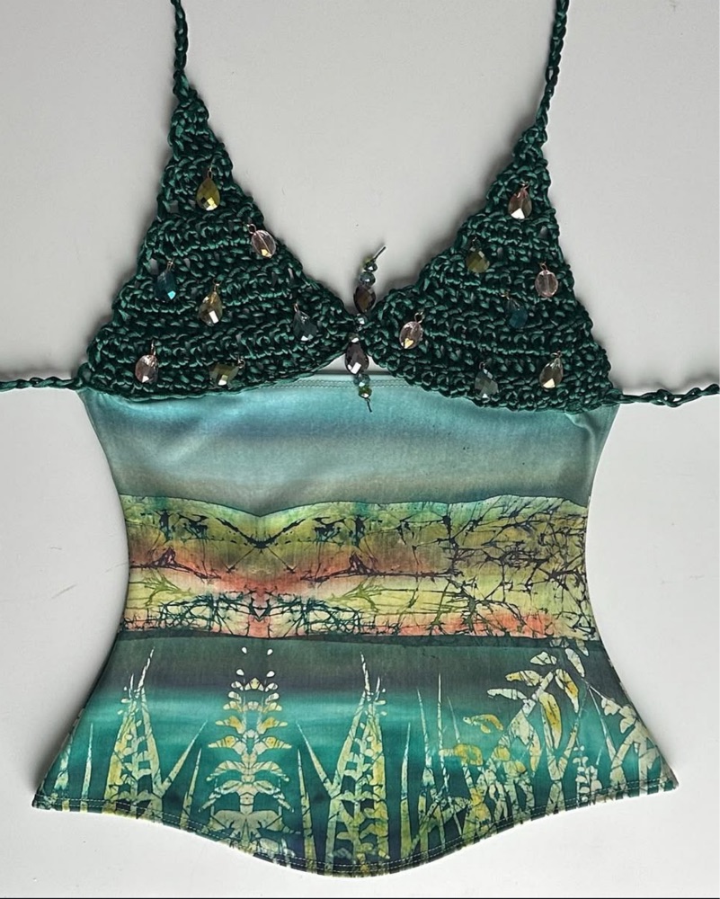 Ella Mia Emerald Shore Bejewelled Batik Top- Size M