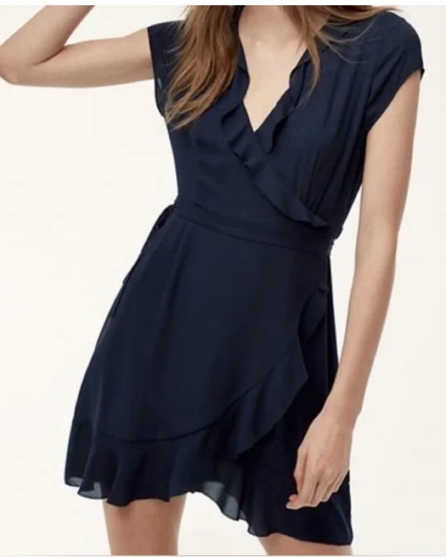 Super cute and feminine wrap dress in navy blue