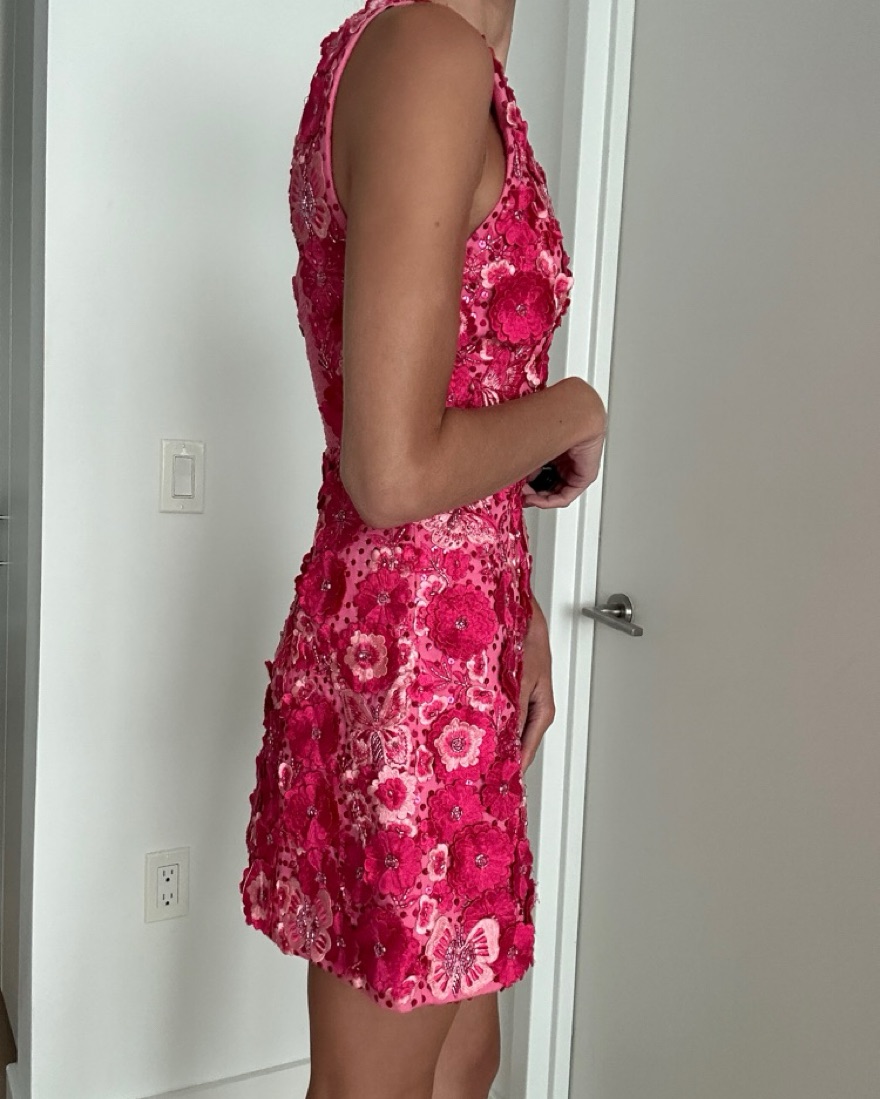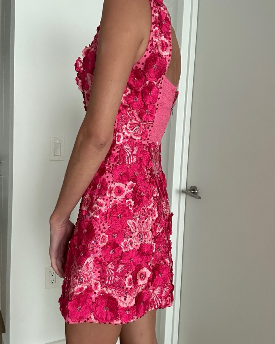 Alice and Olivia Pink Embroidered Floral Mini Dress