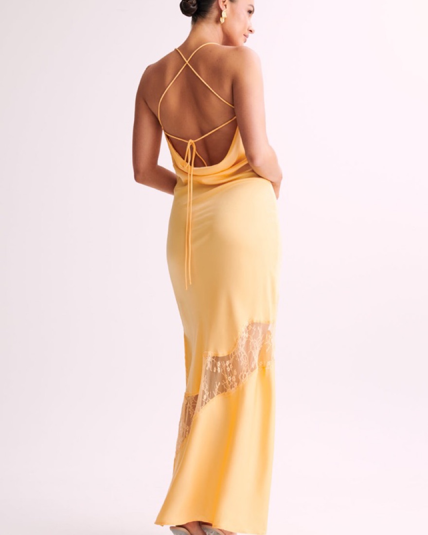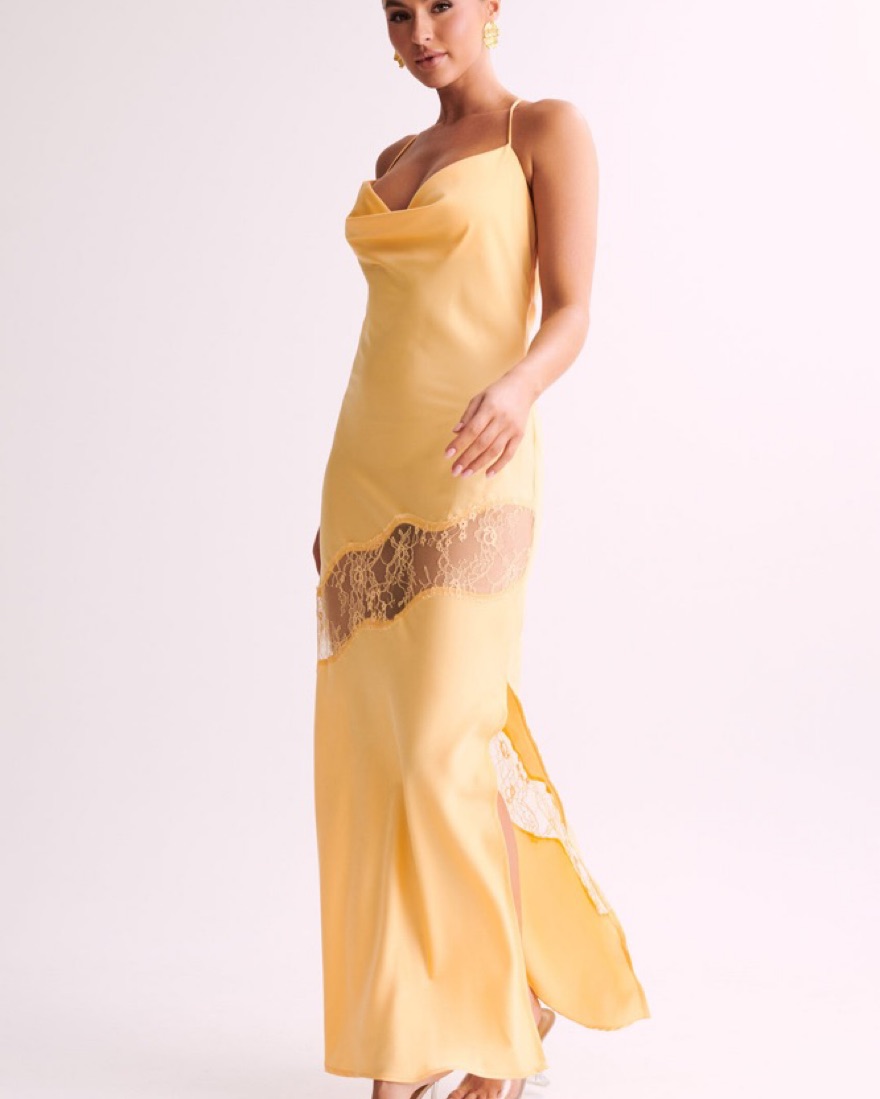 Lace Detail Satin Maxi Dress - Lemon by Meshki - Pickle