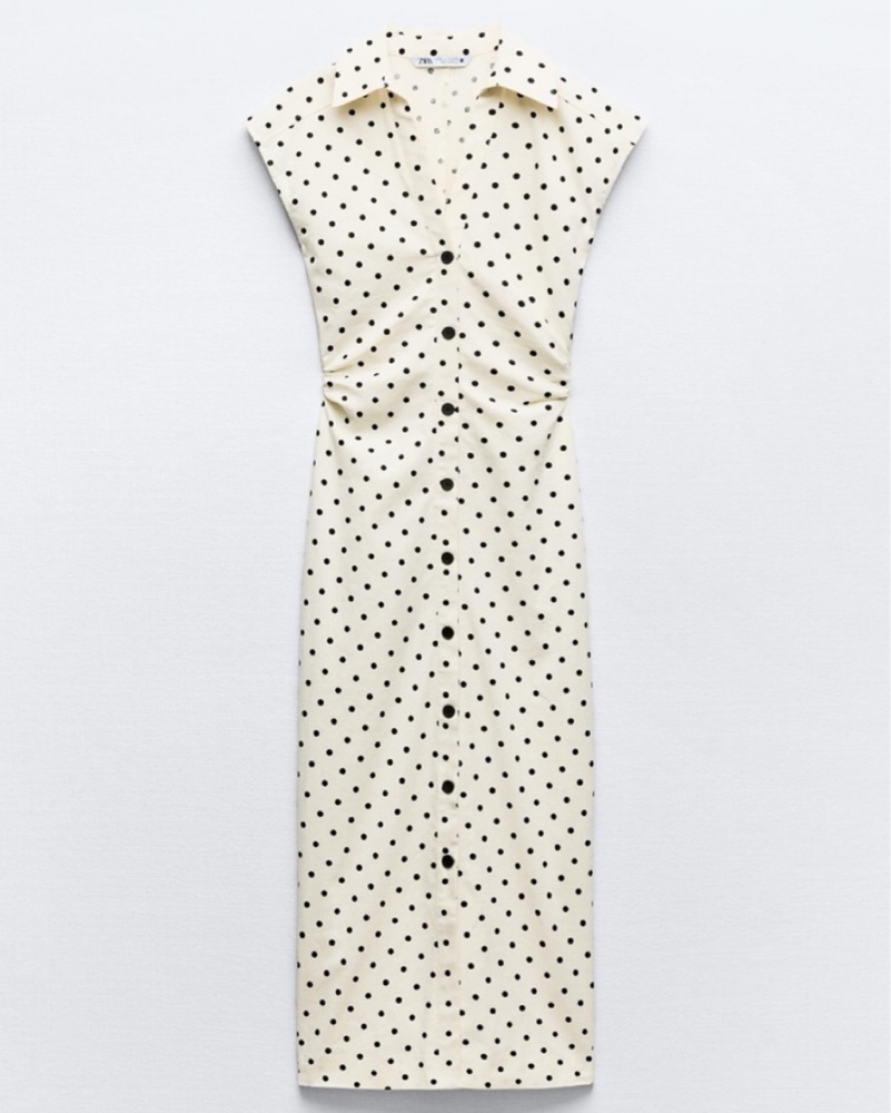 Polka Dot Button-Down Midi Dress by ZARA - Pickle