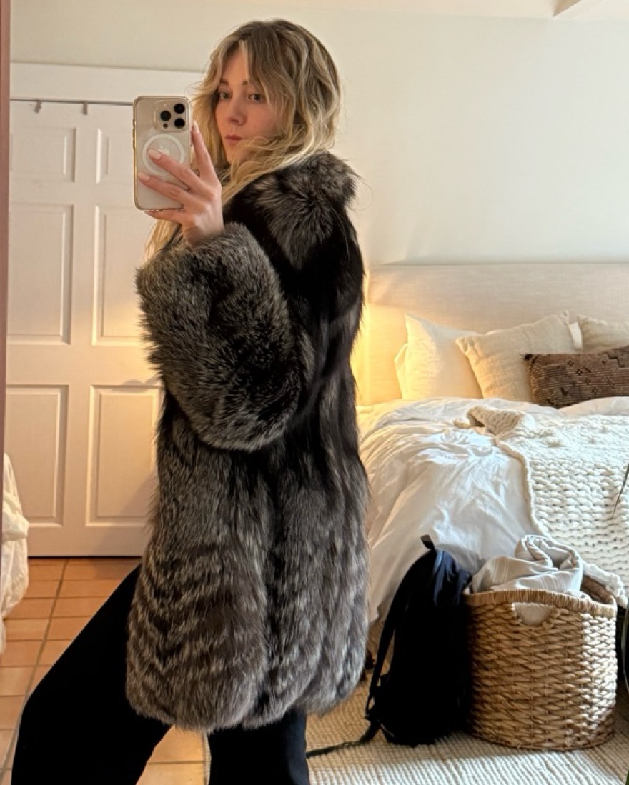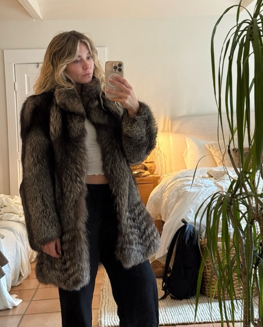 Vintage real fur coat - fits like a medium or oversized small. Fully lined. Built in drawstring for tapered/belted option. Hook closures. Please be delicate with this item :)