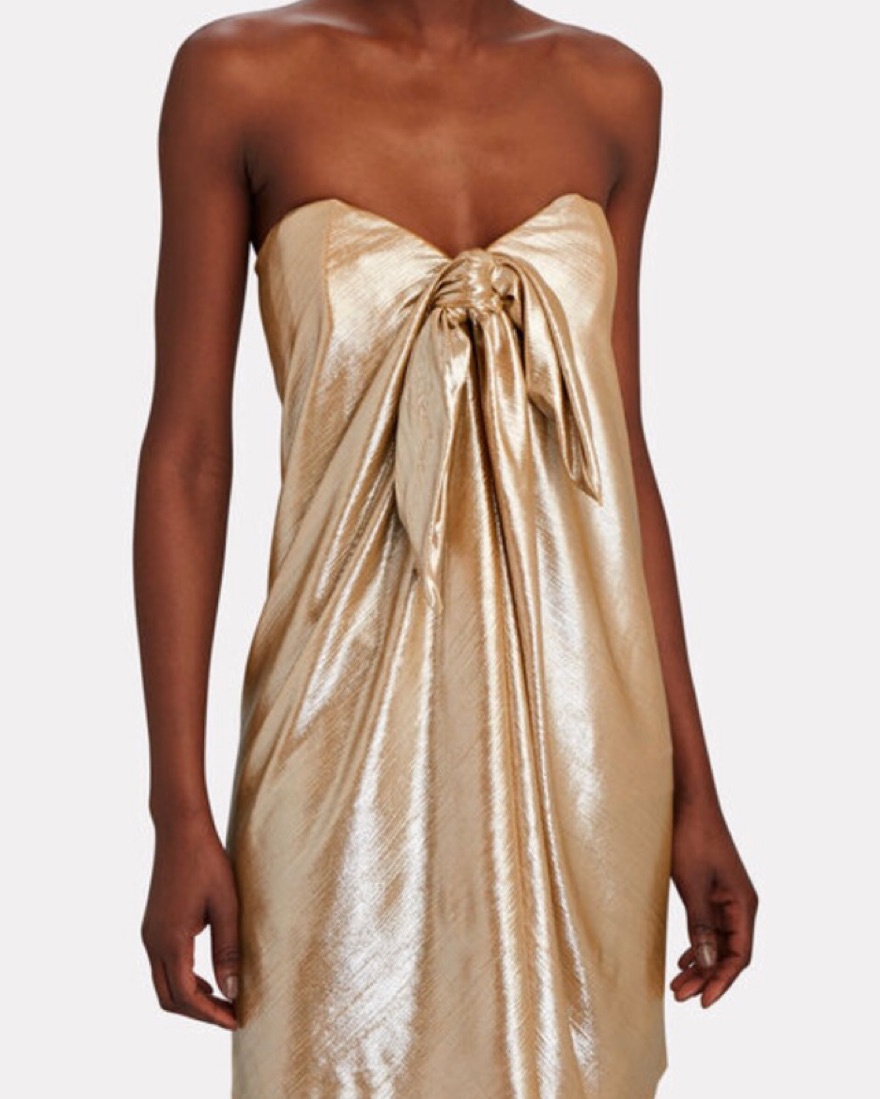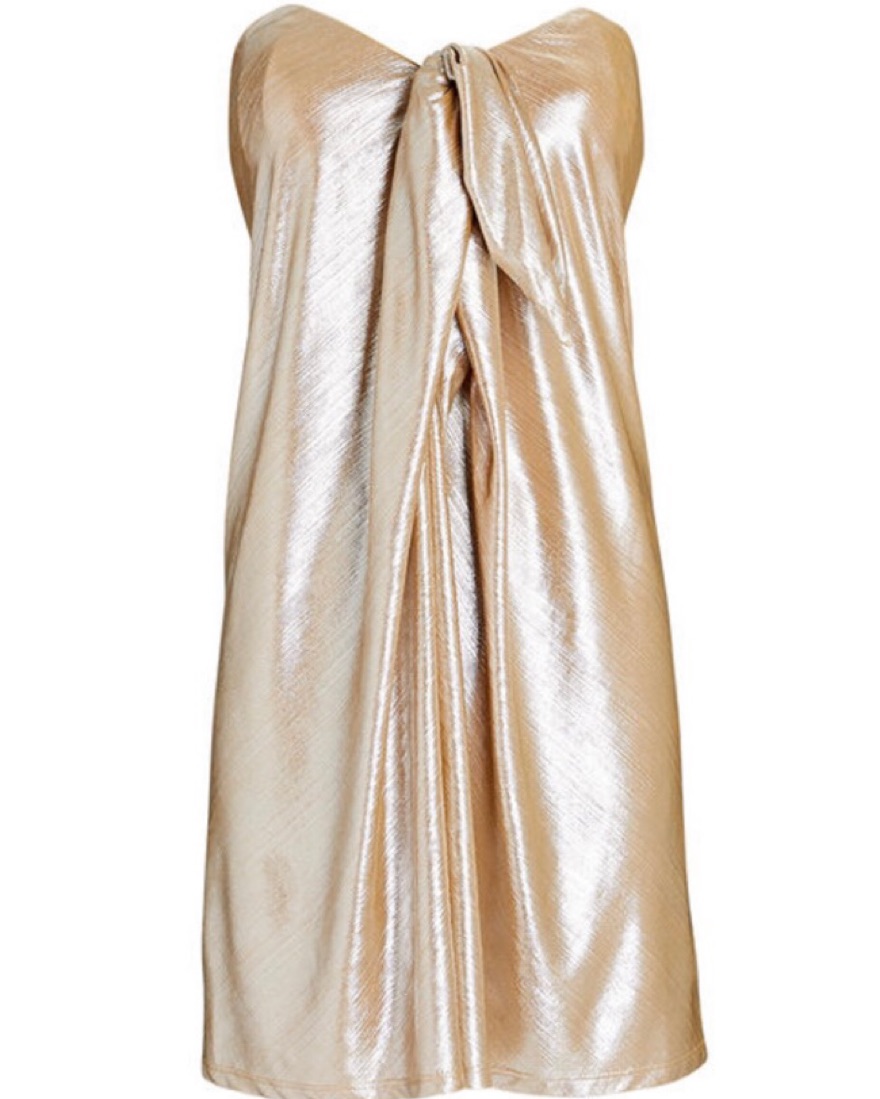 Caroline Constas Kaia dress. Metallic gold strapless mini dress with knotted front. Originally bought from Intermix. The dress has a built in bra as well.