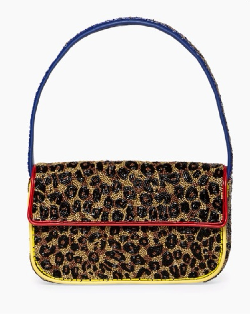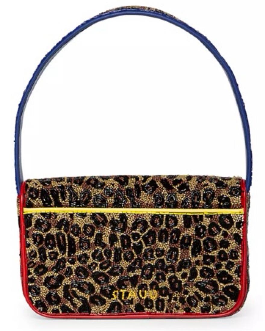 STAUD tommy bag. Leopard print hand beaded. CLOSET POLICY: Happy to provide 100% fit returns for items returned same day. 50% refund 48 hours after recieving the item. 0% refund if notified at the end of the rental period. Please try on!!