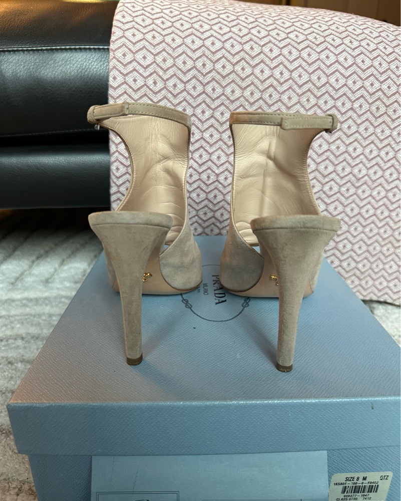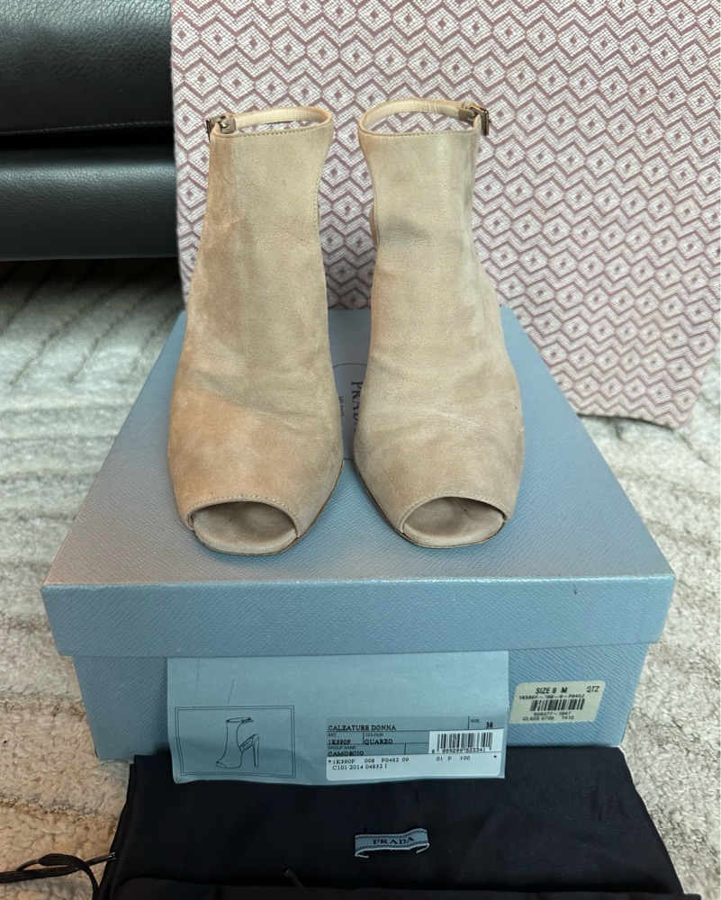Prada Suede Peep-Toe Ankle Boots by Prada - Pickle