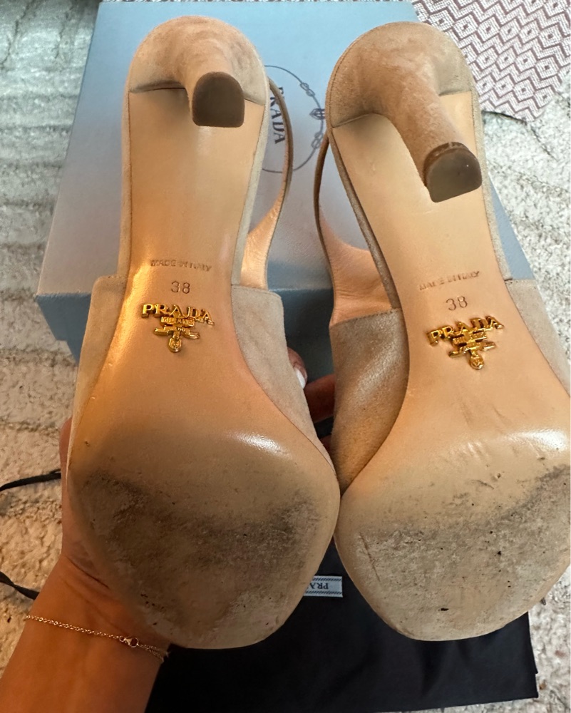 Elevate your look with these luxurious Prada suede ankle boots. Perfect for a night out or special occasion.