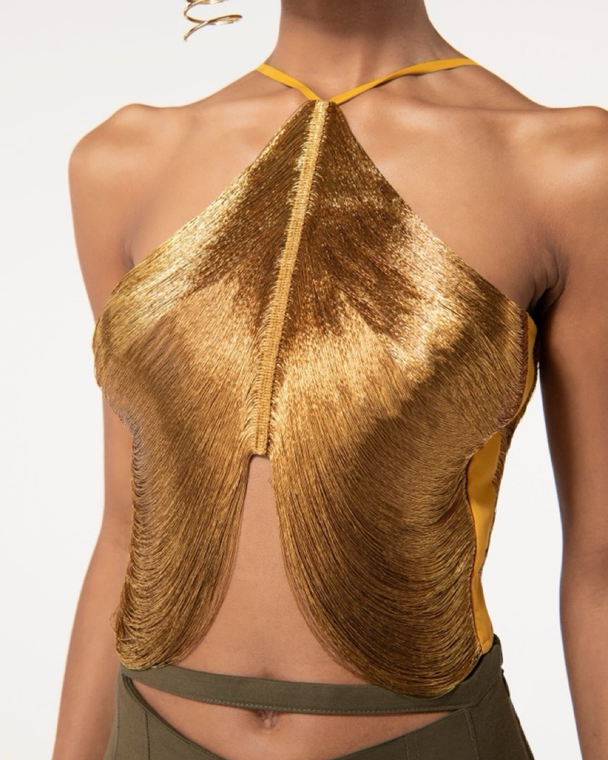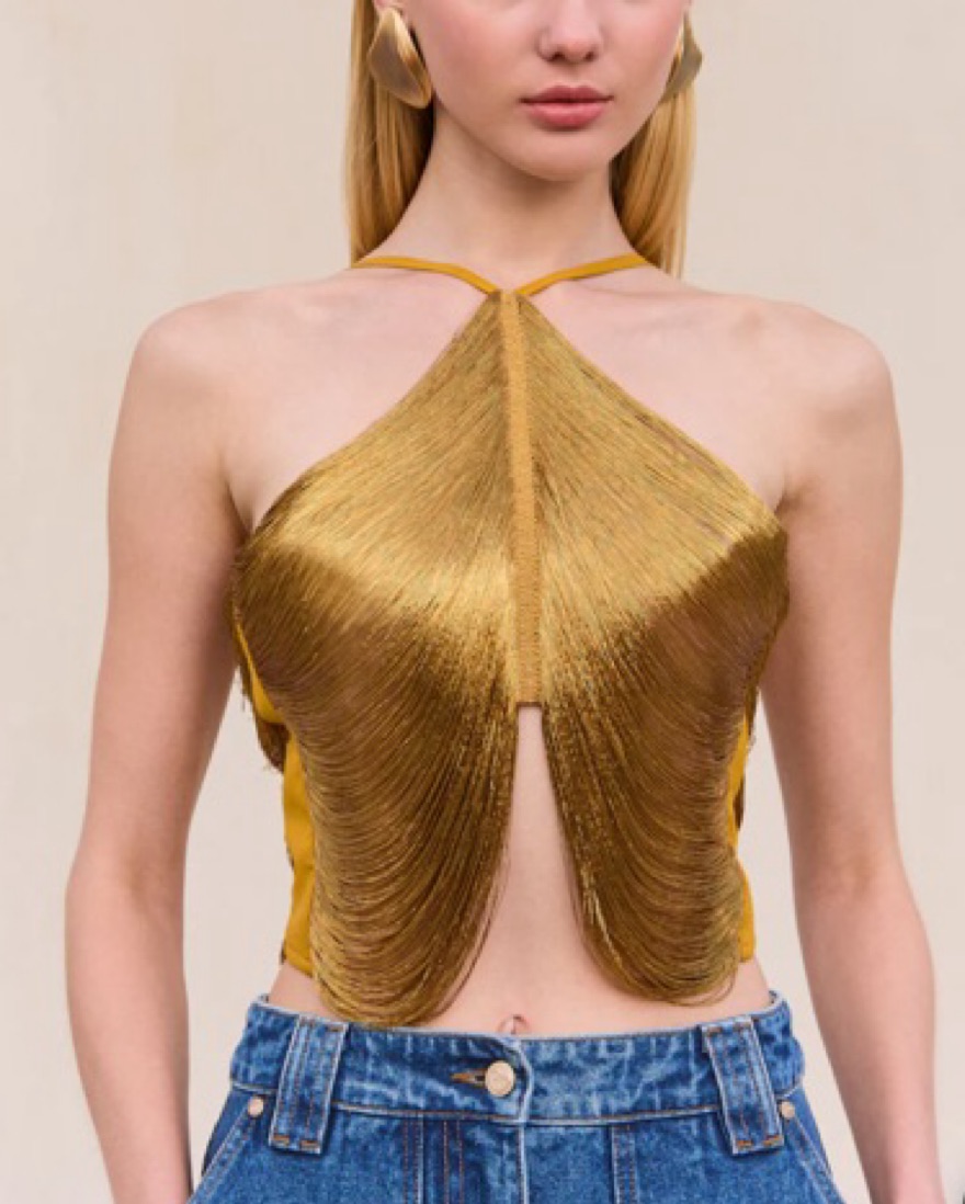 Cult Gaia Gold Top by Cult Gaia - Pickle