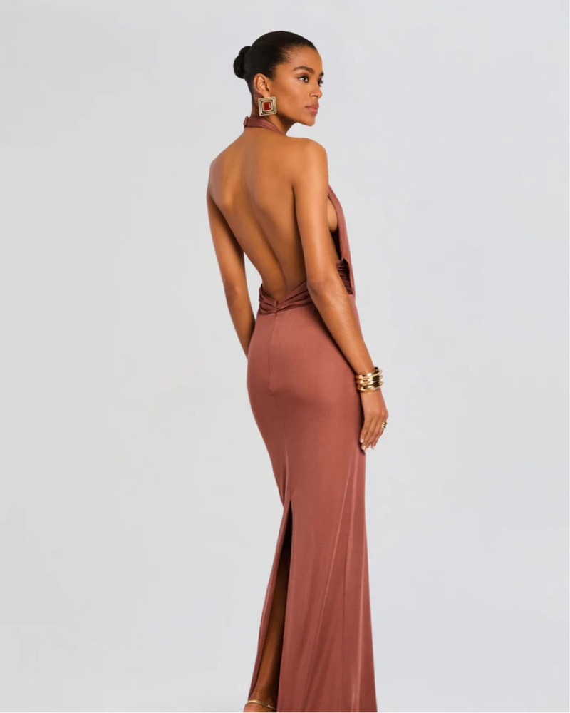 Retrofête Payton dress, such a chic dress. Perfect for late summer/fall as a wedding guest or gala. Gorgeous warm brown/rust color. Fits like a 0/2. Unworn, NWT