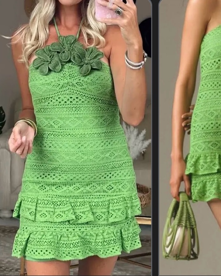 Farm Rio Green Floral Crochet Dress by Farm Rio - Pickle