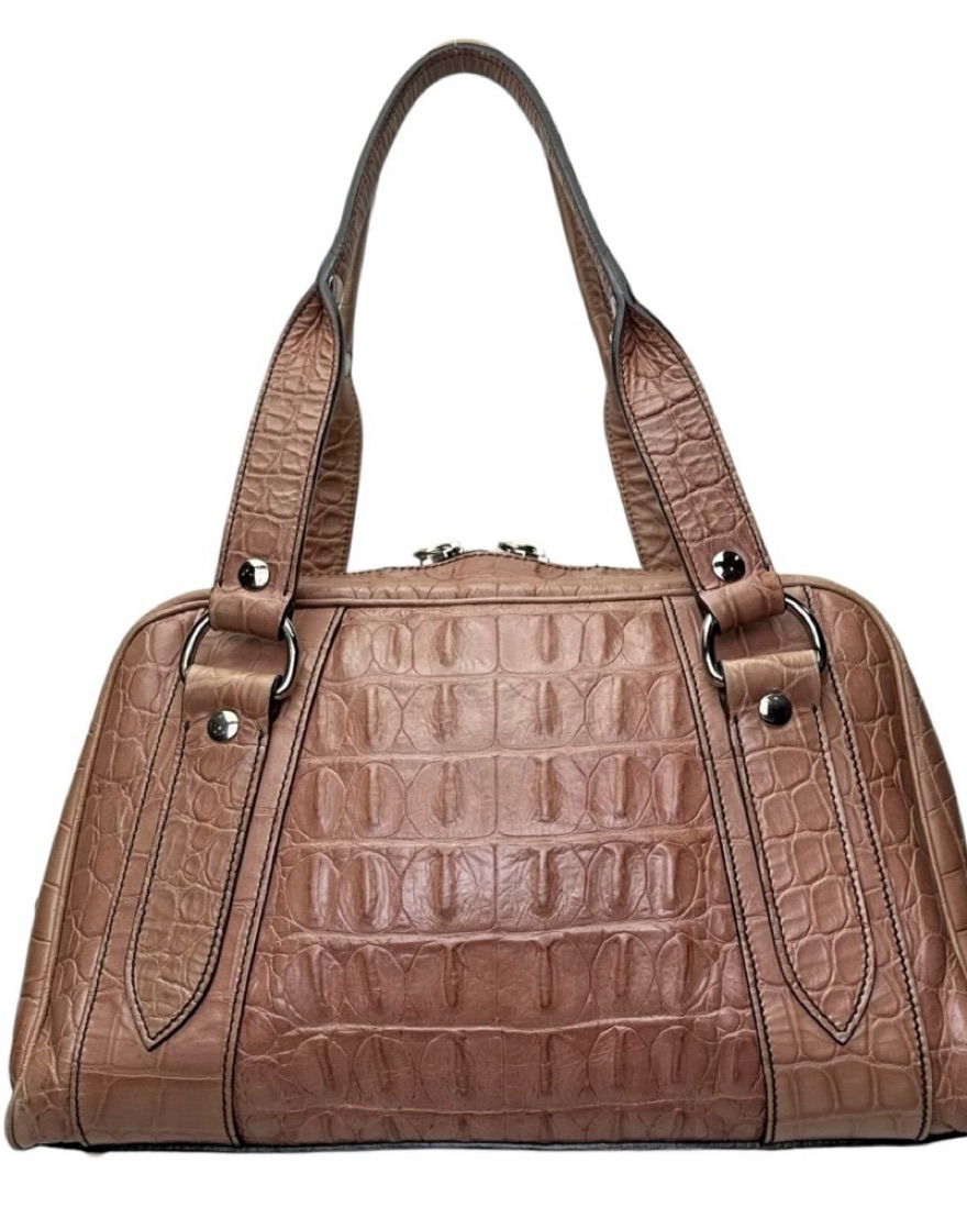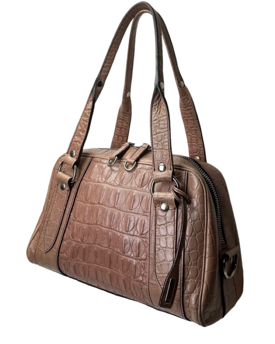 beautiful beige / tan embossed body, silver hardware and it comes with dust bag and is authentic!
