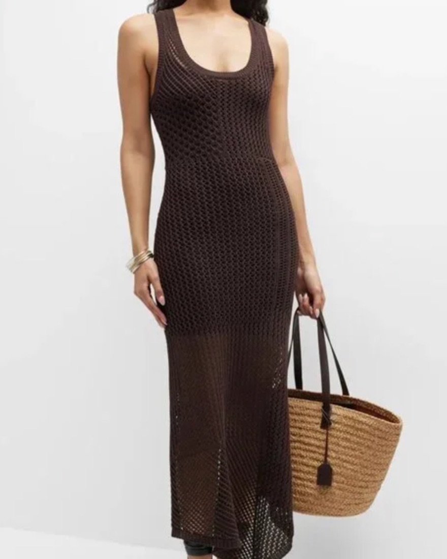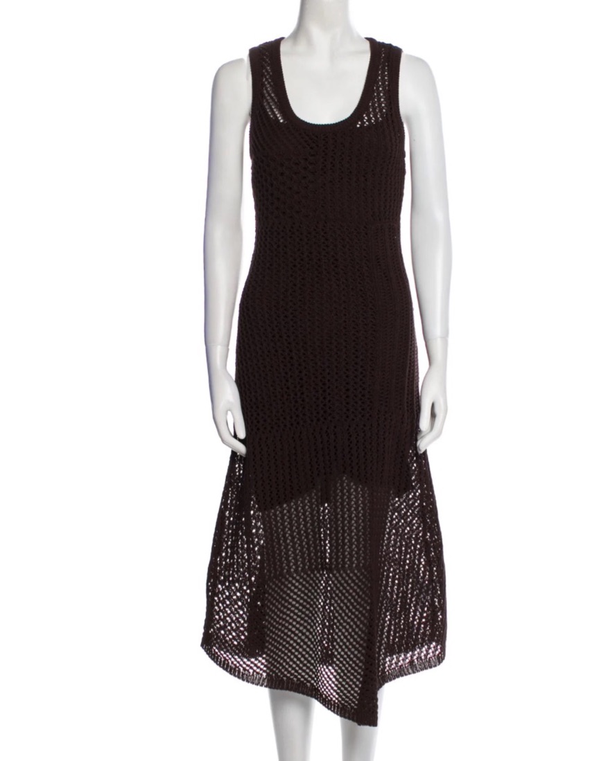 ALC Grace Crochet Mermaid Midi Dress in chocolate brown / “darkest plum”, sleeveless with scoop neck, slip attached