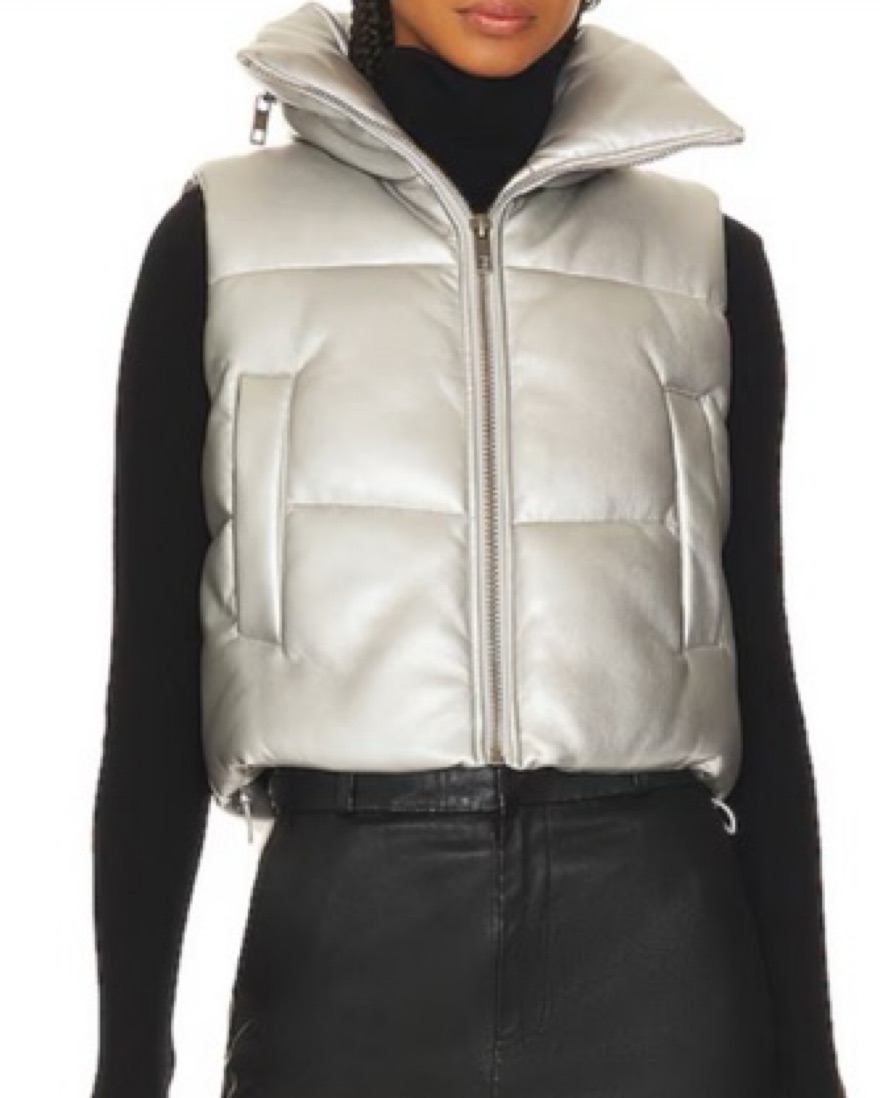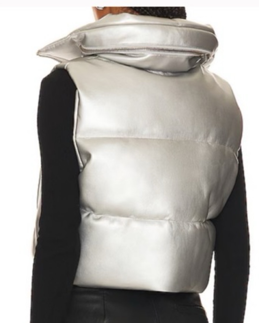 Great for Apres!! A quiet luxury statement piece. Soft and mushy fun vest. Perfect silver! Not too flashy. Never worn