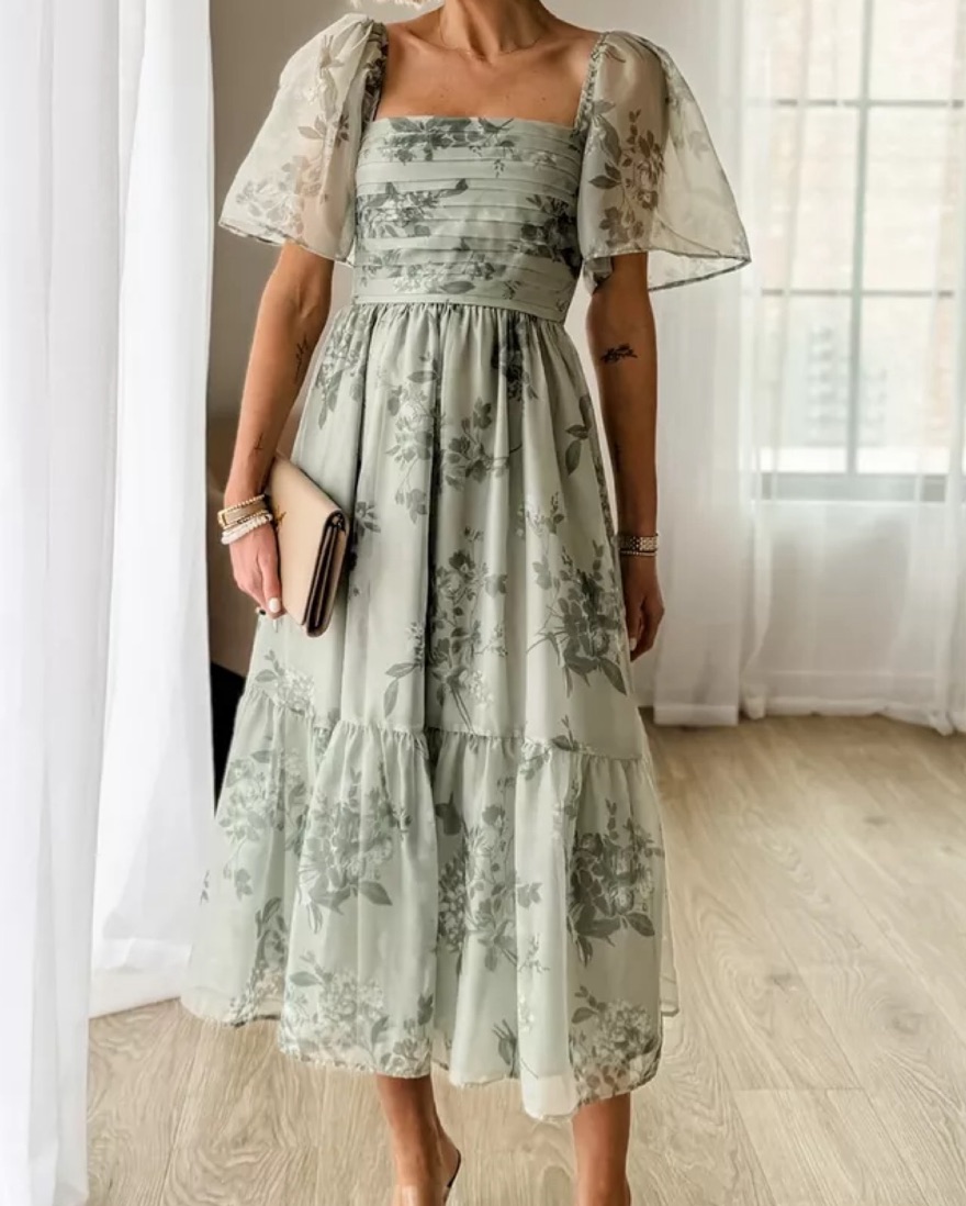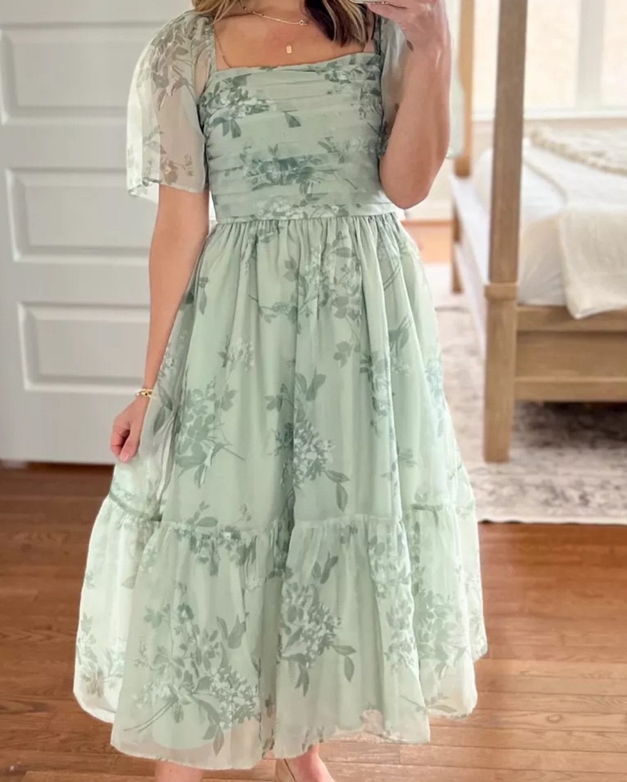 Midi, green floral Abercrombie dress with puffed sleeves. They don’t sell this color anymore - so pretty and feminine!