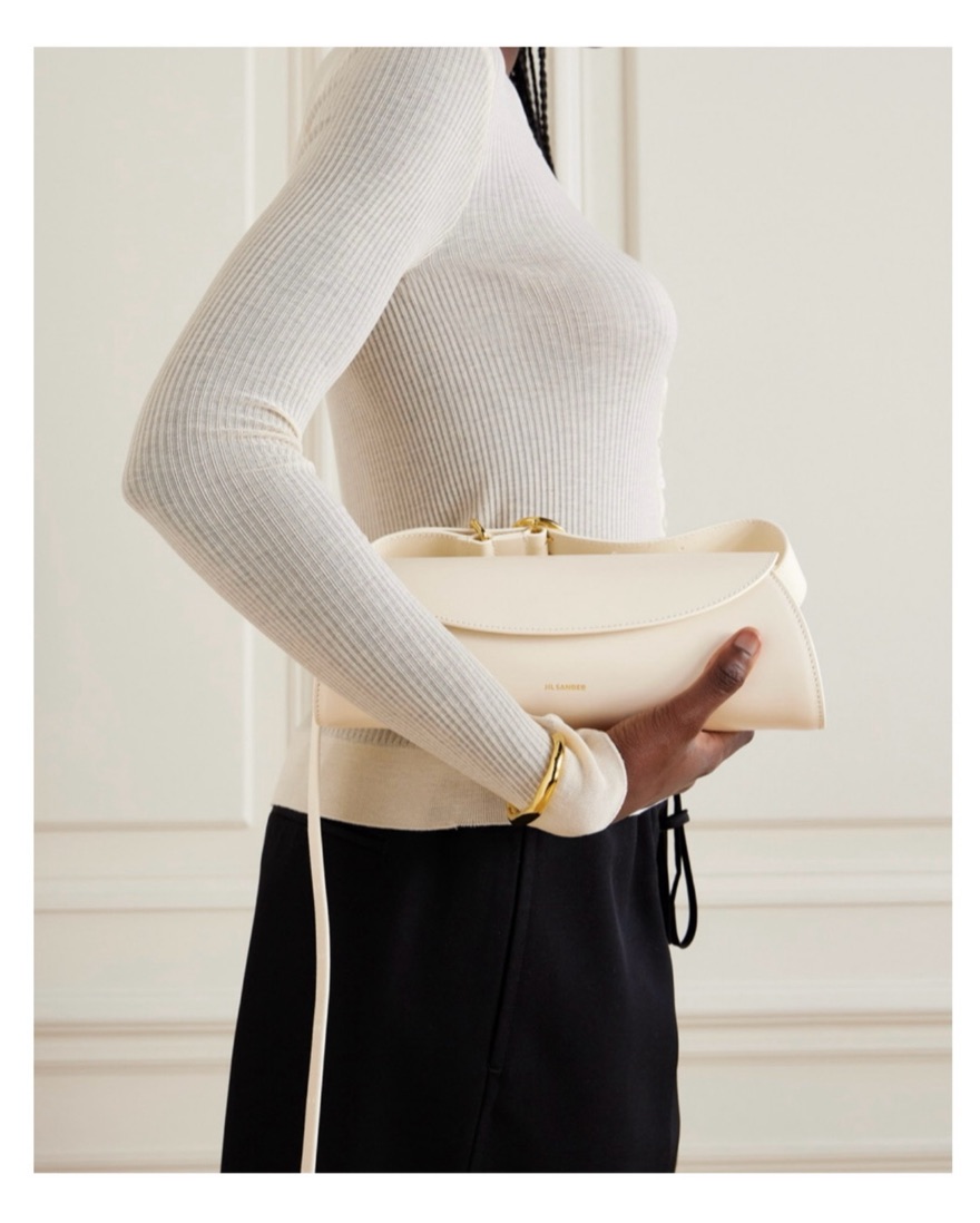 JIL SANDER Iconic cannolo small leather shoulder bag Off-white color Retail price $1900